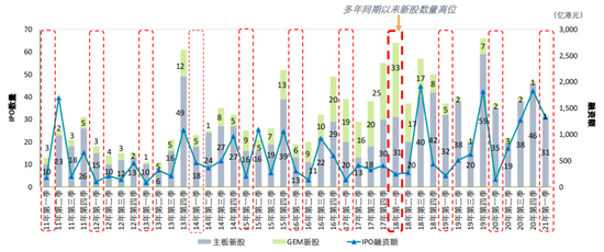 一季度,港股新股数量和融资金额主要来自内地企业,且两者均录得双位数字的升幅,海外企业来港上市则显著减少,而上市市盈率则上调。上市首日表现最佳的三只新股表现更胜去年同期的表现,整体新股平均首日回报率优于去年同期。