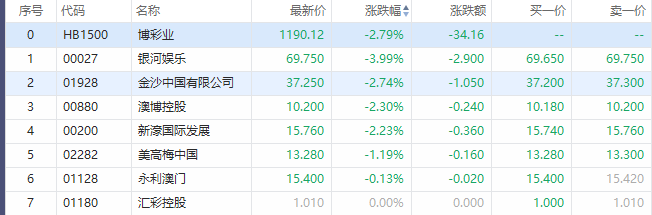 华盛资讯4月9日消息,博彩股午后维持跌势。截至发稿,银河娱乐跌3.99%,金沙中国有限公司跌超2%,美高梅中国跌超1%。