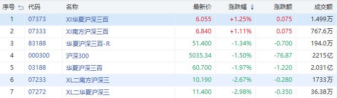 沪深300指数跌1.50%。其中,南方做空沪深三百涨1.11%,成交额767.6万港元;南方两倍做多沪深三百跌2.67%,成交额1733万港元。