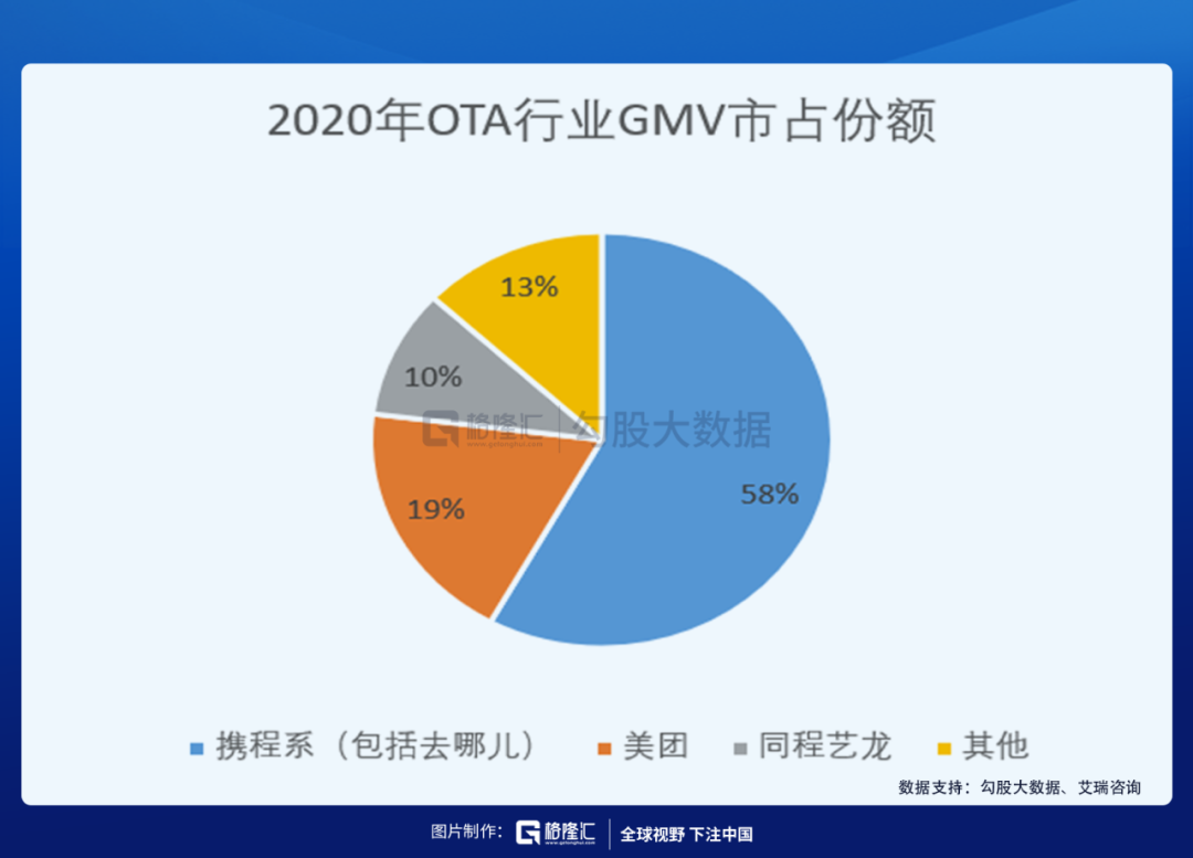 而在OTA领域,携程系经过长期整合,在百度入主携程成为单一最大股东以后,公司2015年在国内合并去哪儿网,并入股同程艺龙、途牛等,在国际上收购天巡、Trip.com、MakeMyTrip, 公司更名Trip.com Group。成为国内OTA市场龙头,因此,在一轮市场出清中,携程系受益最为明显,以2020年OTA行业GMV为例,在不考虑入股的其他公司前提下,携程系拥有市占份额达58%,其次是美团为19%。