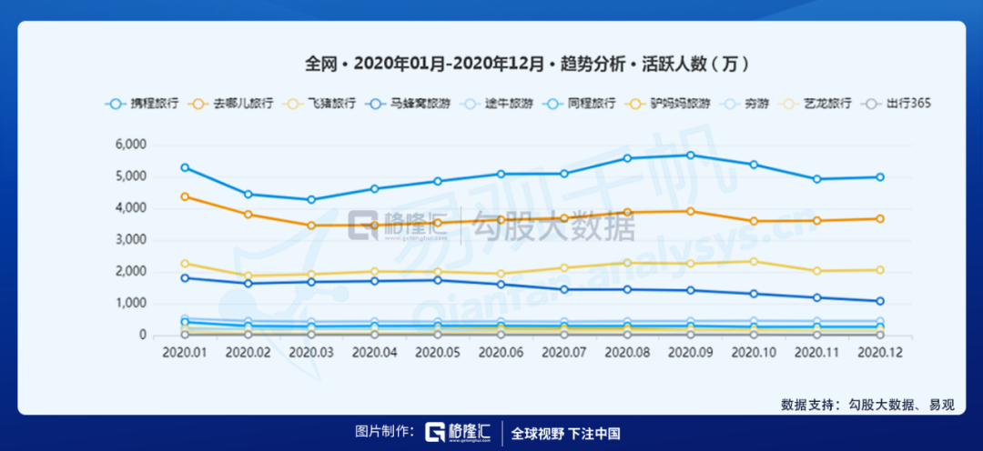 随着社会和经济状况在中国境内逐渐从新冠疫情中恢复,携程在国内旅游业务的也有强劲复苏。根据招股书披露,截至2020年12月31日,公司活动生态系统合作伙伴数量较 2019年12月31日增长约 25%,市场进一步向头部集中。2020年Q4与2019年同期相比,公司省内酒店GMV增长超20%,景点和活动预订量增长超100%。在APP月活方面,携程系(携程旅行+去哪儿)稳定保持在业内前二,并与后面的差距有所拉开,可见公司在捕捉疫情后期,市场所释放得被压抑出游需求中优于同业,其中2020Q4业绩优于市场预期。