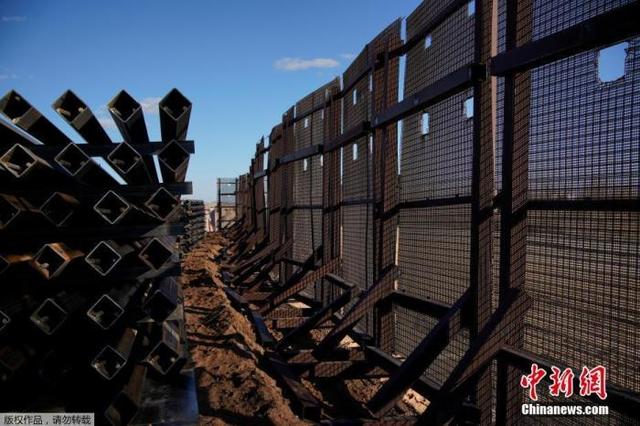 当地时间1月22日,美国新墨西哥州Sunland Park一处边境墙工地内,部分建筑材料被弃置一旁。20日,美国总统拜登签署了要求停止美墨边境墙建设的行政令。