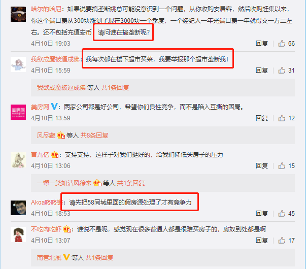 二者成为线上房产市场的领头羊和直接竞争对手,在安居客即将赴港上市的关键时点,姚劲波这波操作大可不必。大部分网友对此行为也是嗤之以鼻,认为姚劲波“格局小了”,并吐槽58同城存在的假房源等问题。