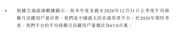 根据安居客招股书和贝壳财报数据显示,从用户规模来看,至2020年12月31日,安居客是平均月活跃用户最大的平台,第四季度平均月活总计为6700万。而贝壳方面第四季度月活则升至4820万,同比大幅增加88.3%,正努力追赶安居客。