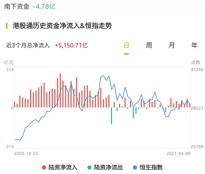 南下资金今日净流出港股4.78亿港元,而上周五为净流入超27亿港元。