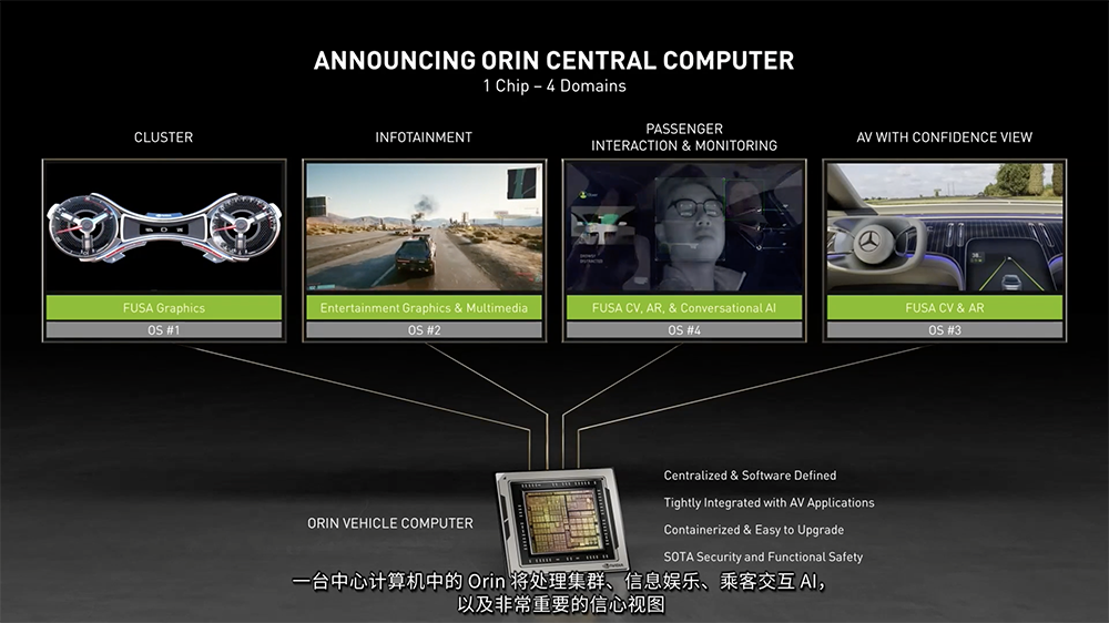 沃尔沃汽车从2016年开始借助高性能且高能效的NVIDIA DRIVE的算力,基于NVIDIA DRIVE Xavier,为新车型开发AI辅助驾驶功能,软件则由沃尔沃汽车旗下的自动驾驶软件开发公司Zenseact自主研发。黄仁勋说,将于2022年投产的NVIDIA自动驾驶汽车计算系统级芯片NVIDIA DRIVE Orin,旨在成为汽车的中央电脑。