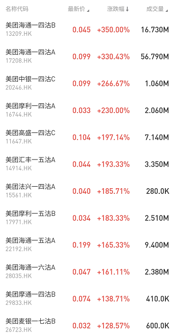 值得注意的是,美团合计超20只沽证涨幅在100%以上(包括100%)。