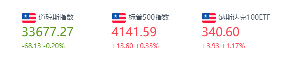 美股周二收盘,标普500创历史新高,三大指数中仅道指收跌。道琼斯指数跌68.13点,跌幅0.20%,报33677.27点;标普500指数涨13.6点,涨幅0.33%,报4141.59点;纳斯达克综合指数涨146.10点,涨幅1.05%,报13996.10点。