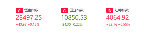 周二,港股全天呈冲高回落走势。截至收盘,恒生指数涨43.97点或0.15%,报28497.25点,全日成交额达1428.36亿。国企指数跌0.22%,报10850.53点,红筹指数涨0.55%,报4064.92点。