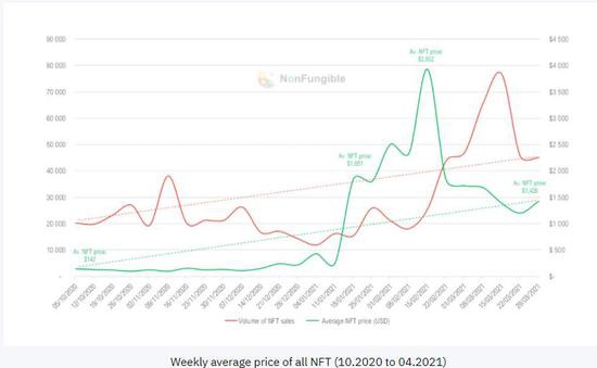 NonFungible.com最新报告称,尽管平均价格较今年2月大幅下降,但年初NFT(非同质化代币)销售额不断突破新高,买方兴趣和购买量激增。“出圈”后的NFT当前持有者存在“惜售”意向,造成了市场稀缺现象。