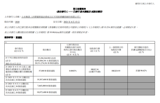 根据周二晚间港交所公告,小米以每股24.60-25.05港元的价格回购股票,占已发行股本的0.06%,合计耗资约3.98亿港元回购1601.74万股B类普通股。自3月31日以来,小米已回购1.203亿股股票。