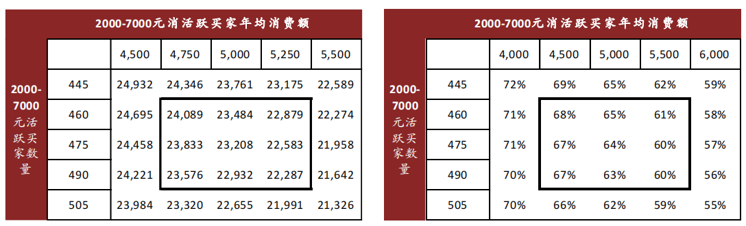 图8:核心用户人均消费和成交额比重敏感性分析数据来源:中金证券,36氪