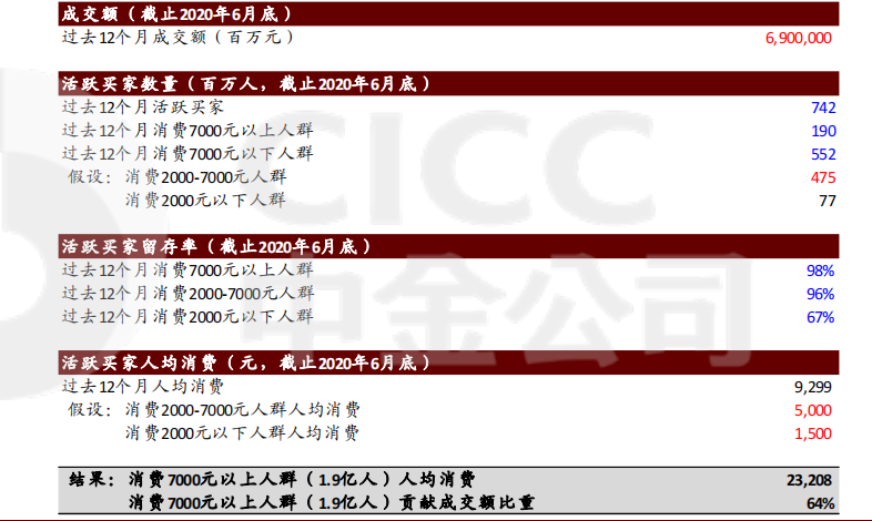 而根据中金证券的测算,目前淘系平台有近 2 亿消费者年均消费在2.1-2.5 万元左右,这部分消费者贡献了4.2-4.6万亿元GMV,约占淘系平台成交额的 2/3。