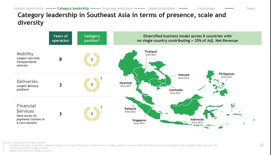 截至目前Grab业务遍及东南亚大部分地区,拥有超过2.14亿次应用下载,在8个国家(马来西亚、新加坡、菲律宾、泰国、印尼、越南等)超过400多座城市为1.87亿用户提供服务。