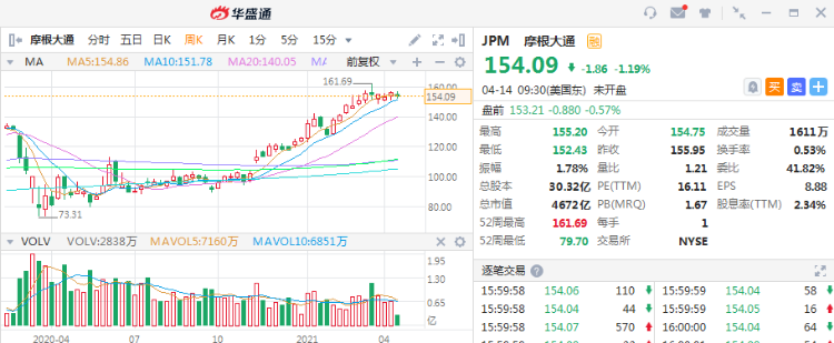 财报公布后,摩根大通盘前一度跌近2%。今年迄今为止,摩根大通股价上涨了21%,而KBW银行指数上涨了25%。
