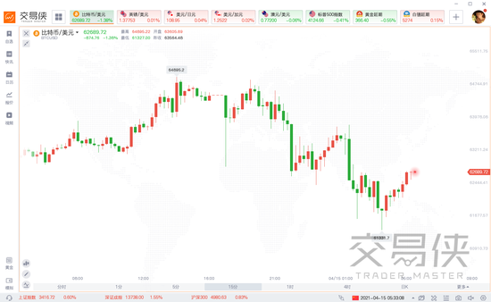 比特币也随之转跌。比特币在欧股盘前曾升破6.4万美元,一度逼近6.5万美元关口,连续第二日创盘中历史新高,鲍威尔讲话后,美股午盘一度跌破6.15万美元刷新日低,较日内高位回落3400多美元,跌幅超过5%,美股收盘时处于6.2万美元上方,最近24小时跌逾1%。