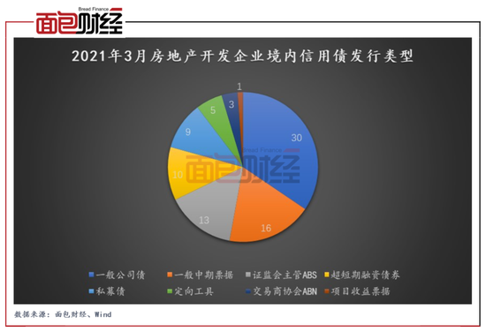 图2:2021年3月房地产开发企业境内信用债发行类型
