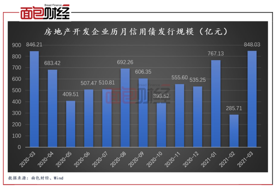 图1:2020年3月-2021年3月房地产开发企业历月信用债发行规模