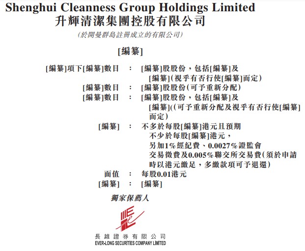 据港交所4月14日披露,升辉清洁集团控股有限公司向港交所主板递交上市申请,长雄证券有限公司为其独家保荐人。