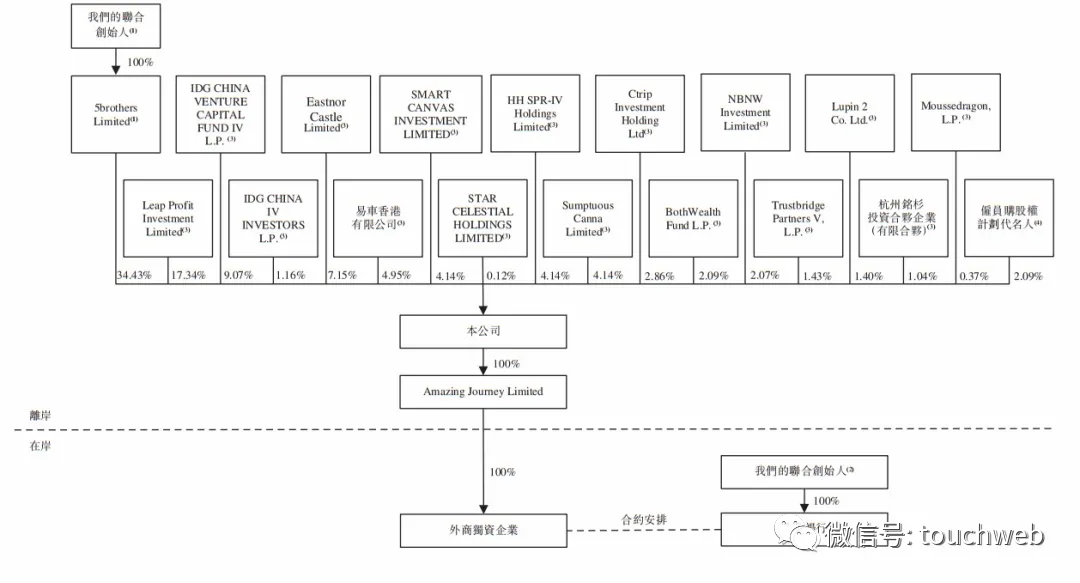 IPO前,宋中杰、李金龙、朱敏、段剑波及李跃军5位联合创始人通过5brothers Limited持有公司34.43%,为大股东;