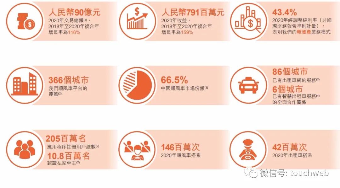 2020年,嘀嗒全年交易总额为人民币90亿元,全年营业收入从2019年的5.81亿元增加至7.91亿元,2018年至2020年的复合年增长率为159%。