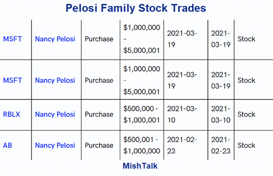 包括巴伦周刊(Barron)、福克斯新闻等多家媒体报道,美国众议院议长佩洛西(Nancy Pelosi)的丈夫保罗(Paul Pelosi)被指在期权交易方面风生水起。据报道,4月9日的财务披露显示,保罗上个月通过看涨期权买入了大量微软公司和游戏平台Roblox的股票。
