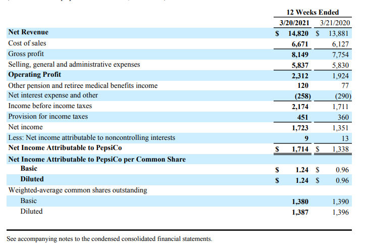 百事可乐发布Q1财报,财报显示,百事可乐Q1实现营收148.2亿美元,归属于股东的净利润为17.14亿美元,预期为15.42亿美元,而去年同期为13.38亿美元,实现同比上涨28.1%。