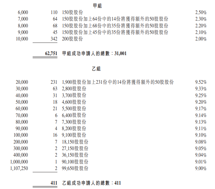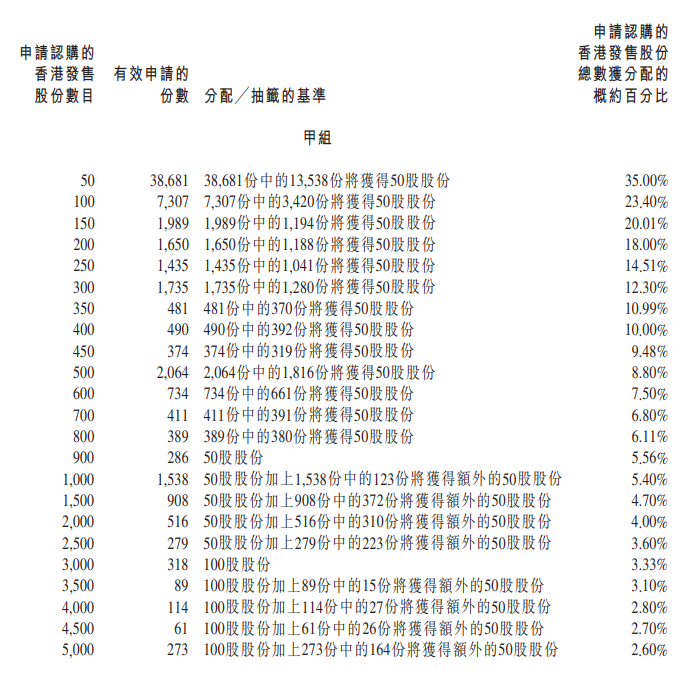 公开发售一手中签率35%,申购18手稳获一手,乙头获配38或39手。