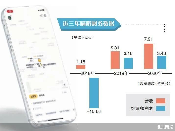 2020年,嘀嗒总营收7.91亿元,较上一年增长36.3%;按非国际财务报告准则计算,经调整利润总额3.43亿元,较上一年增长8.7%。