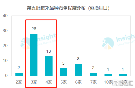 从目前统计的品种竞争情况来看,大多数品种处于 3-4 家企业竞争的位置,当然后面随着更多企业过评,数据会有变化。本次竞争最激烈的两个品种为艾司奥美拉唑和利伐沙班,符合企业数量均超过 10 家。