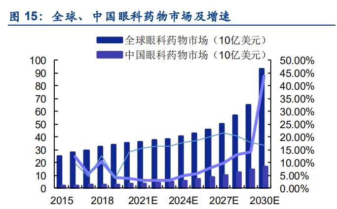 全球与中国眼科药物市场规模于2019年分别超过300亿美元和30亿美元。