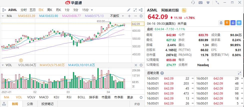四、阿斯麦:据分析师预期调净利润同比大增174%
