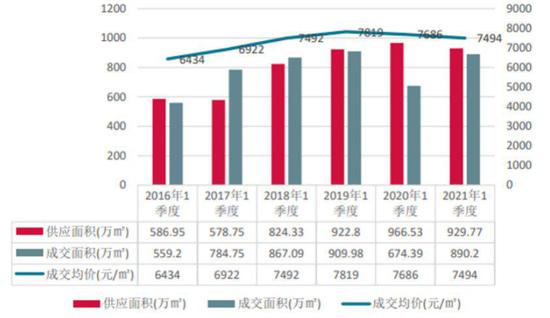 据中指研究院数据分析,2016年至2021年,广西土地市场规模整体持续上升,2021年一季度商品房供销是历史次高位。