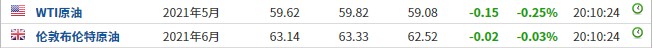 截至发稿,WTI原油跌0.25%,报59.62美元/桶。布伦特原油跌0.03%,报63.14美元/桶。
