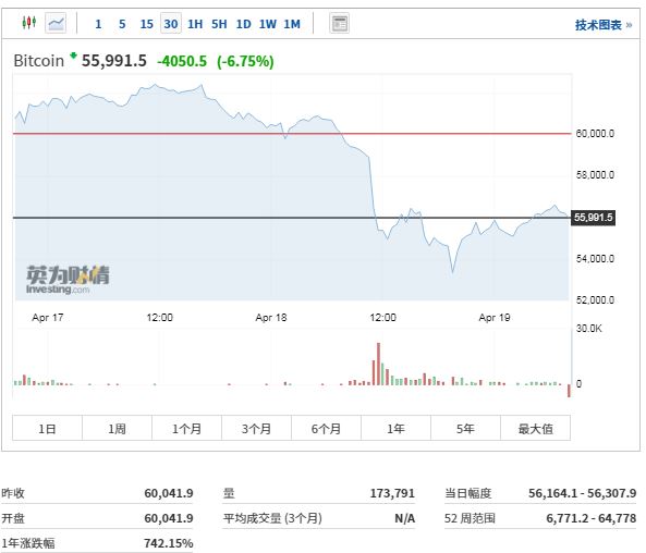 4月18日上午,比特币闪崩,一度跌破52000美元,目前维持在55000美元上方。与此同时,其他数字货币全线杀跌,以太坊一度暴跌近20%、币安币一度暴跌17%、瑞波币一度暴跌26%。市场消息称美国财政部将指控数家金融机构使用加密货币洗钱。