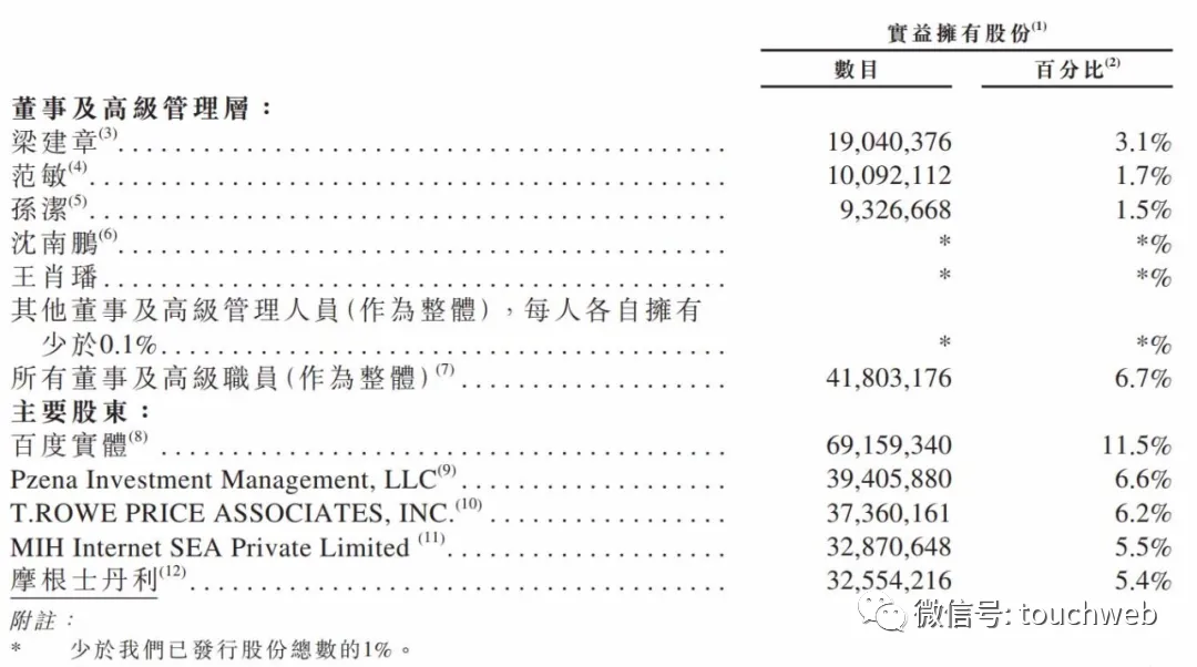 MIH Internet SEA Private Limited 持股5.5%,摩根士丹利持股为5.4%。