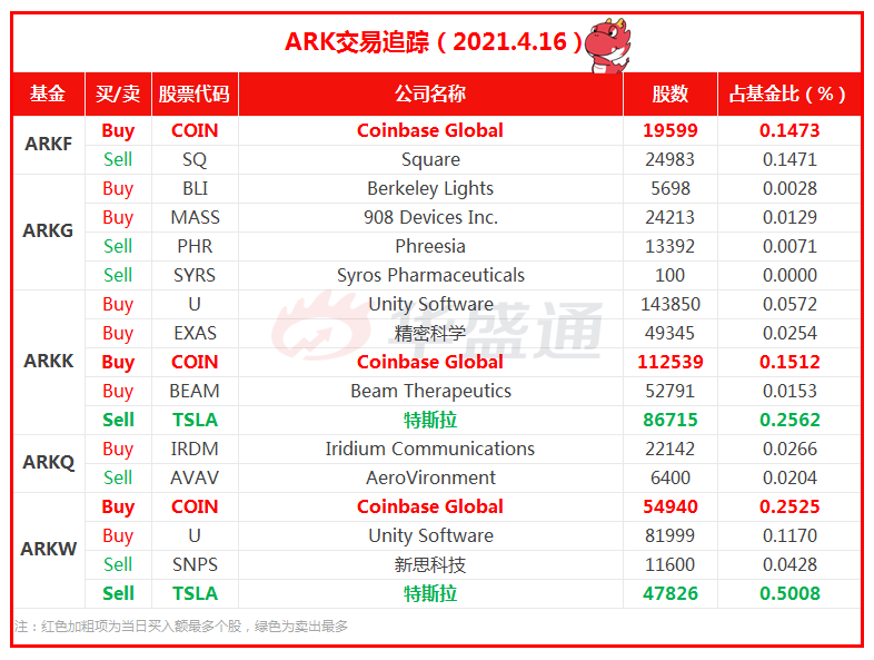 Coinbase上市三日,木头姐便买了3日,周五甚至减持了爱股特斯拉来腾挪仓位,对其“偏爱”程度可见一斑。