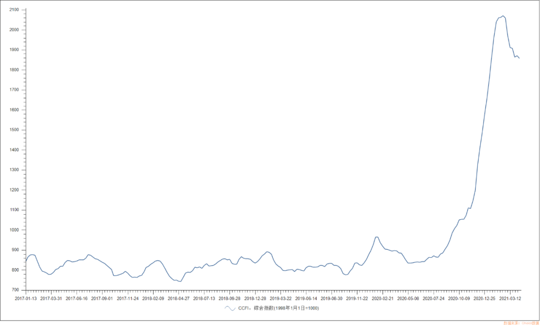 公告称,业绩大增是因为,报告期内集装箱航运市场(简称集运)持续向好,中国出口集装箱运价综合指数(CCFI)均值为 1960.99 点,同比增长 113.33%,环比去年四季度增长 53.8%。