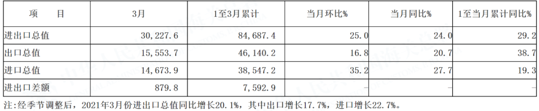 除了运价的上涨,随着疫苗的注射,全球经济复苏。一季度我国进出口总值同比增长29.2%,3月进出口总值和出口总值环比增长25%和16.8%。IMF(国际货币基金组织)4月6日也将2021年全球经济增速预测进一步提高至6%。