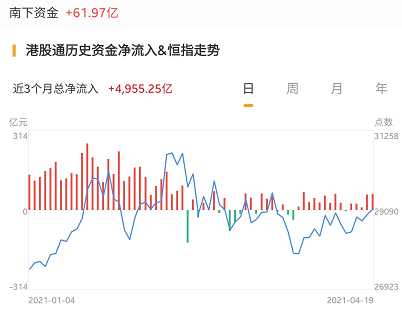 南下资金今日净流入港股61.97亿港元,而周一为净流入超61亿港元,基本持平。