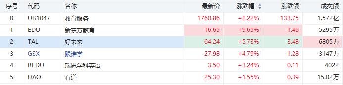 华盛资讯4月20日消息,教育服务板块大涨,新东方涨近10%,好未来涨近6%,跟谁学涨近5%,有道涨1.55%。此前,新东方发布财报,2021财年Q3营收11.9亿美元,市场预期11.41亿美元,去年同期9.23亿美元。新东方2021财年Q3每ADS盈利0.09美元,市场预期0.06美元,去年同期0.09美元。新东方预计第四财季营收11亿-11.4亿美元,市场预期10.9亿美元。