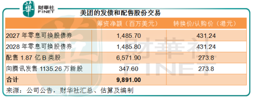 3.现有股东腾讯(00700-HK)以每股273.80港元出售所持的1.87亿股美团股份,并以同样的价格273.80港元认购1.87亿股美团新股份。腾讯出售的股份将配售给不少于六名独立专业机构及/或个人投资者。