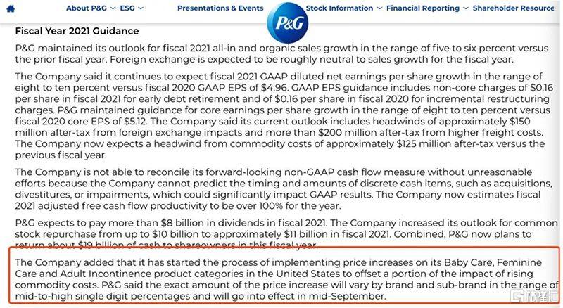宝洁公司称,其价格上涨将因品牌而异,但涨幅将在中至高个位数的范围内。该公司还在评估原材料成本以及外汇对其他产品类别的影响,这意味着公司产品价格涨幅会更大。