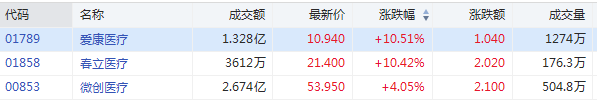 天风证券近日发布研报称,骨科耗材带量采购或带来投资机会。截至发稿,爱康医疗(01789)涨10.51%,报10.94港元;春立医疗(01858)涨10.42%,报21.4港元;微创医疗(00853)涨4.05%,报53.95港元。