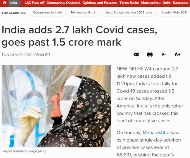 “全面失控!”印度连续六日单日确诊病例超20万例