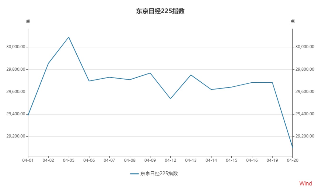 4月20日晚上8时左右,日本方面突然传来消息,东京将寻求日本政府宣布进入紧急状态,因为现在距离2021年夏季奥运会仅仅剩下三个月,现在必须加强限制措施,以遏制冠状病毒感染激增。受此影响,日经225指数期货突然断崖式杀跌,一度跌幅达3.2%。周二当天,日经指数收盘已经大跌了近2%。