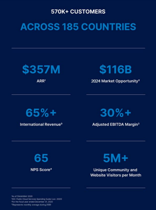 据招股书显示,DigitalOcean在全球拥有13个数据中心,100多万开发者、业务遍布185个国家,服务57万客户,海外营收占比65%。