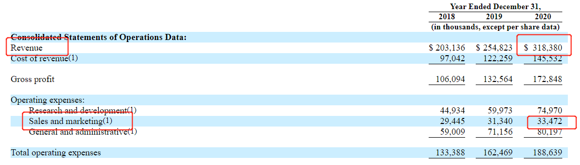 高盛追踪该股的分析师Christopher Merwin认为,由于毛利率较低,一些投资者对DigitalOcean进行了折价估值,但这种做法过于苛刻,因为公司拥有非常高效的销售和营销行动。事实上,2020年的营销成本仅占营收的10%,这很大程度上要归功于高效的获客渠道和开发者社区,这有助于降低用户获取成本。