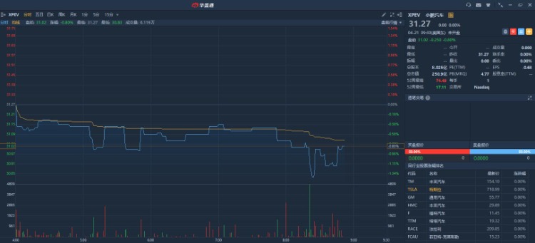 截止本文发稿前,小鹏汽车盘前报31.01美元,跌0.83%。