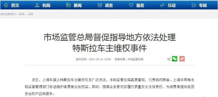 国家市场监管总局深夜发声!特斯拉:将提供事发前半小时车辆原始数据